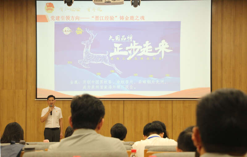 福建省金鹿日化股份有限公司柯美辉以《“晋江经验” 引“鹿”前行》为主题,宣讲民营企业与“晋江经验”之间的关系。团泉州市委供图