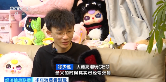 大漂亮潮玩CEO 徐少胜:今年上半年增速相比去年已经翻倍了。最火的时候其实已经夸张到在越南、泰国,他们逢年过节或者结婚都把潮玩作为礼品送,当伴手礼。最忙的时候整个企业基本上都是通宵达旦在运转,设计师在设计,销售部在销售,我们经常吃泡面,有时候来不及点外卖。