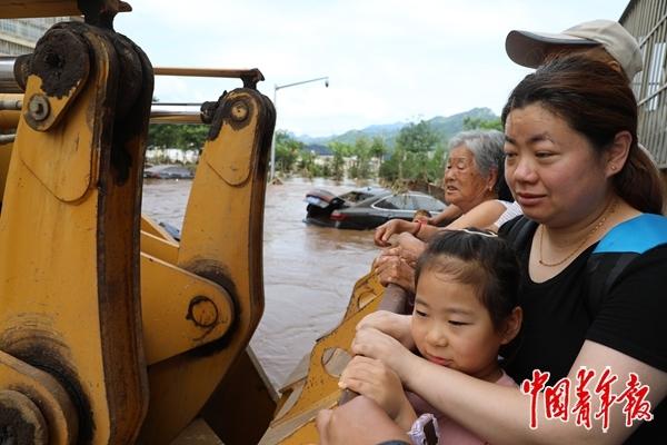 7月28日早7时,最先抵达养老照料中心的北京市消防救援总队特勤支队救援队伍在暴雨中先后4次尝试利用铲车机械设备挺进。由于水位过深、水流太急,队伍无法抵达养老照料中心点位。后来,队伍通过涉水泅渡、翻越建筑房顶的方式,紧急靠近养老照料中心开展救援。