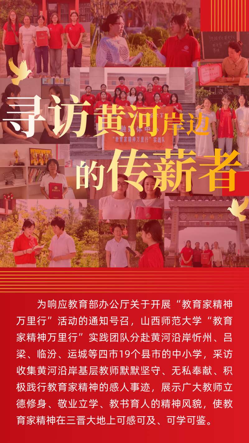 7月10日至31日,山西师范大学学生开展寻访“黄河岸边的传薪者”社会实践活动。马茹玉就是队员之一。活动中,实践队员分赴黄河沿岸忻州、吕梁、临汾、运城等地,采访了各地中小学扎根基层、默默耕耘的优秀教师群体。本次活动旨在响应教育部办公厅关于“教育家精神万里行”活动的号召。