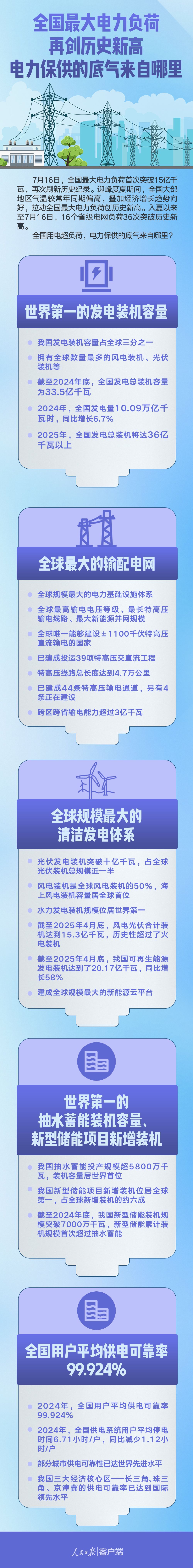 入夏以来,全国用电负荷4次创新高,国家电网用电负荷5次创新高,华北、华东、华中、东北、西北、西南等6个区域电网负荷16次创新高,天津、冀北、河北、山东、江苏、浙江、安徽、福建、湖北、河南、湖南、江西、辽宁、蒙东、陕西、四川、重庆等17个省级电网负荷50次创新高。
