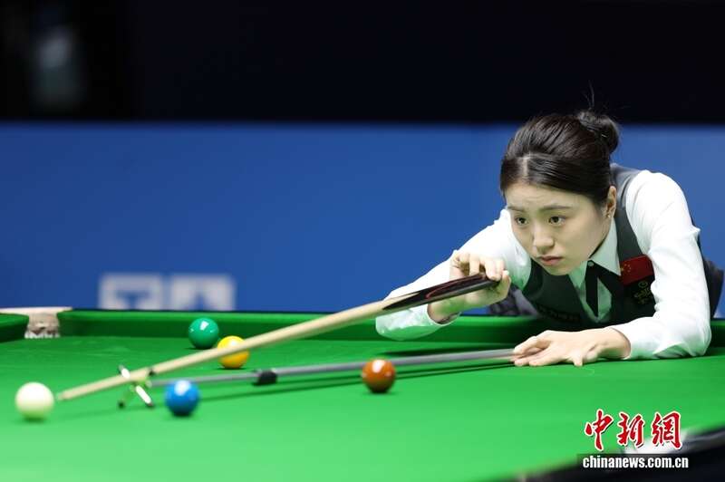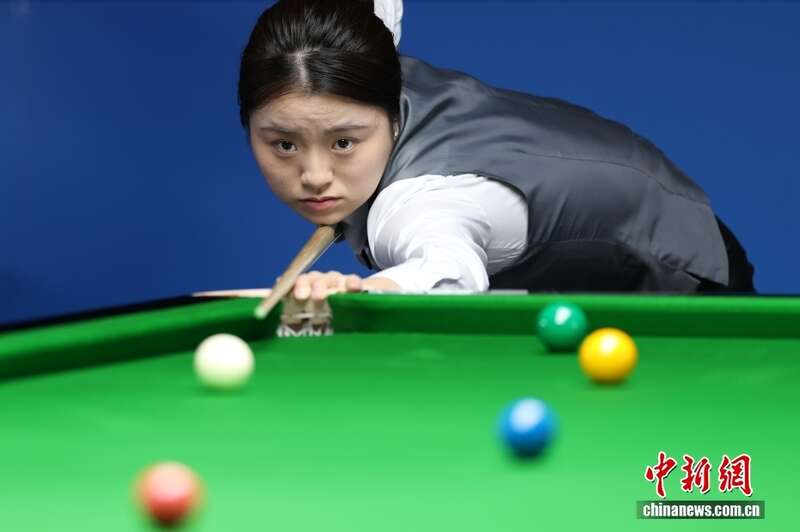 8月13日,在2025年成都世运会女子斯诺克6红球决赛中,中国选手白雨露2比0战胜泰国选手努查·菲弗尔(PHOEMPHUL Narucha),获得金牌。图为白雨露在比赛中。