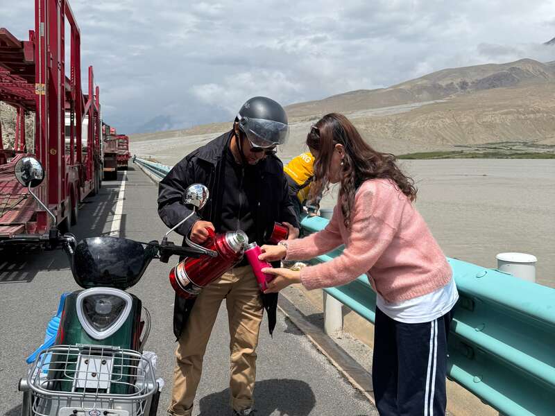 当上海理工大学、上海健康医学院的师生们从红其拉甫国门返程时,偶遇了一场泥石流——湍急的泥浆裹挟着大石块冲断了道路,数以千计的车辆被困在蜿蜒的山路上。缺水缺粮的困境让原本疲惫的师生们更添煎熬。