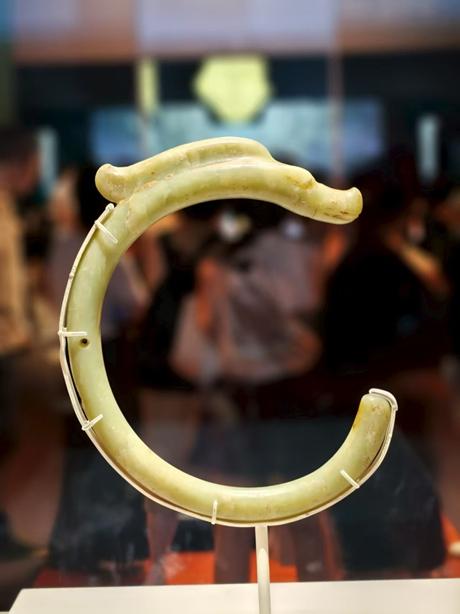 上海博物馆展出的红山文化“C”形玉雕龙,故宫博物院藏。全杨/摄