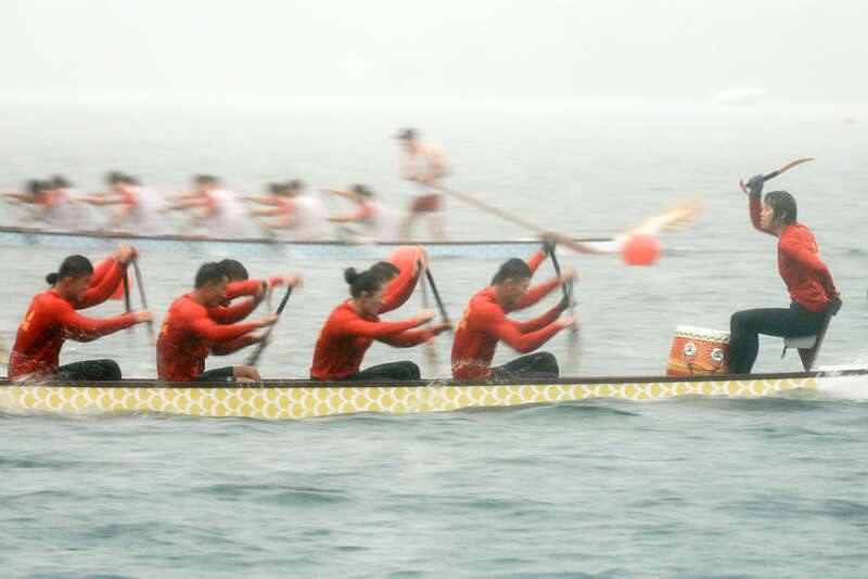 2024年7月7日,一支法国龙舟队在马恩河上划龙舟。