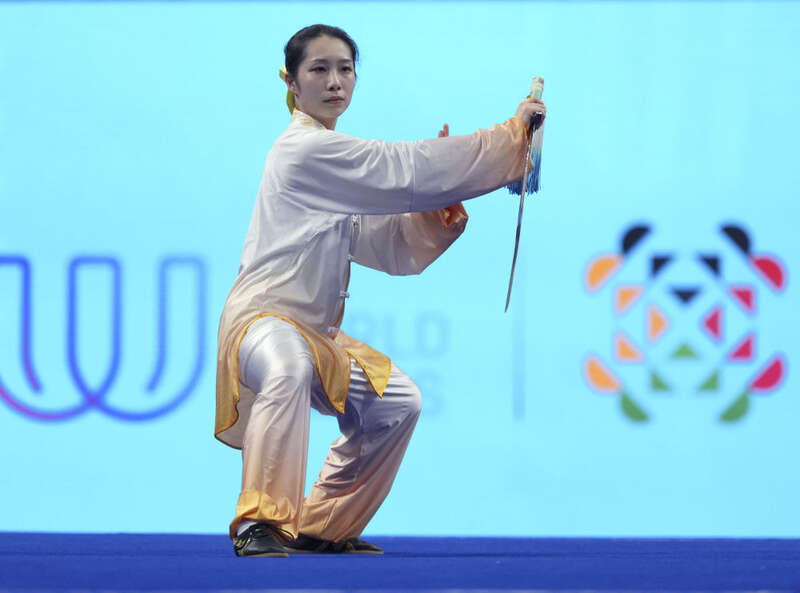 8月8日,卢卓灵在2025年成都世运会太极剑比赛中。