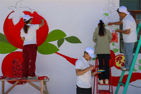 在七十四团,实践团成员参观了戍边展览馆,通过泛黄的老照片与承载历史的实物,串联起七十四团从屯垦戍边初期到新时代发展的壮阔历程;聆听兵团人顶风冒雪开垦荒地、与边防官兵并肩巡逻的故事,深切体会“热爱祖国、无私奉献、艰苦创业、开拓进取”的兵团精神。在钟槐哨所——那个“永不换防的地方”,队员们与坚守一线的“木兰班”女兵开展交流,“守护国土安宁是沉甸甸的责任,想到身后的万家灯火,再苦再累都值得。”女兵们简单的话语,道出的是“一生只做一件事,我为祖国守边防”的铮铮誓言。实践团还以“石榴籽祖国行”为主题开展墙绘活动,“像石榴籽一样紧紧拥抱”的标语温暖而有力,艺术创作生动诠释着各民族守望相助、同心向党的深厚情谊。