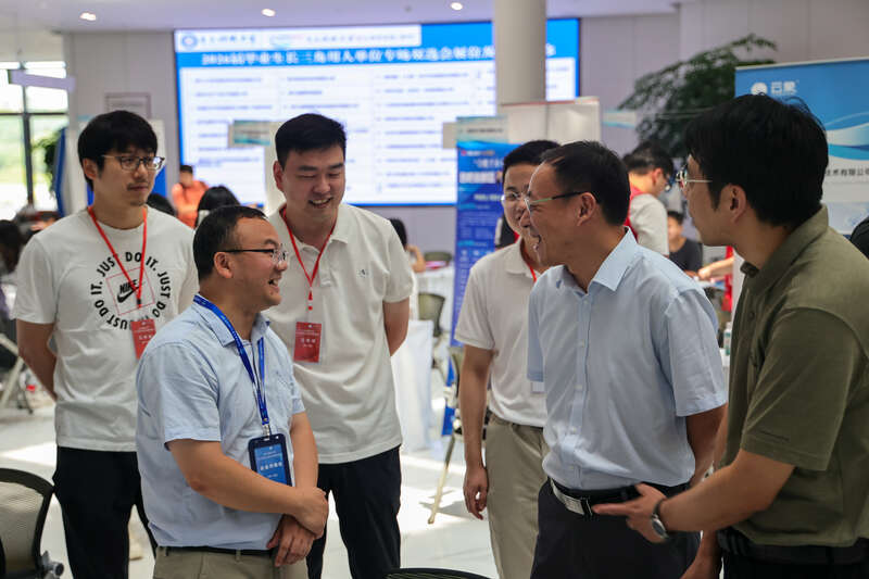 活动中,电子科技大学长三角研究院(湖州)党委书记、执行院长汪利辉,院长助理梁木生实地走访企业展位,与用人单位交流需求,与毕业生亲切交谈。汪利辉表示,研究院始终坚持以服务国家战略需求为导向,致力于培养具有创新精神和实践能力的高层次人才,希望院企双方深化合作,助力更多高质量人才在湖培养,为国家重点单位及本地成长型科技企业输送更多优秀人才,实现人才成长与区域发展的双赢局面。