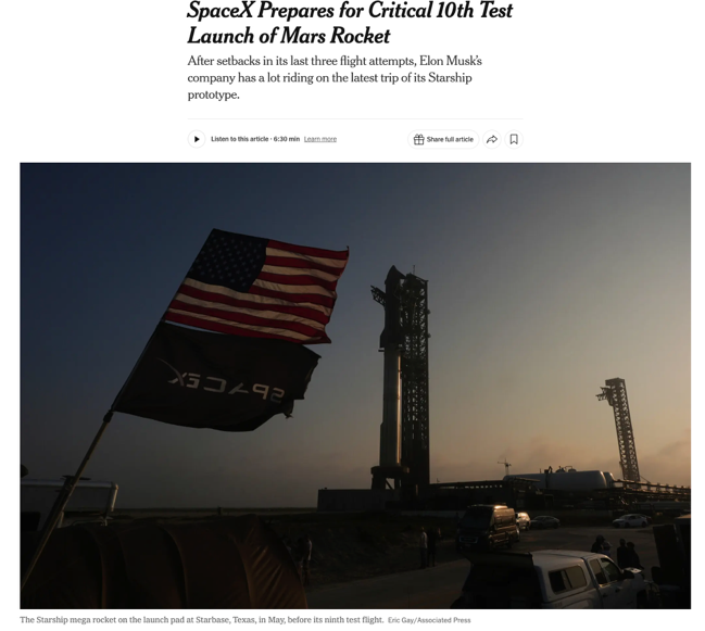 这次“星舰”第十次试飞,除纯粹技术验证外,还承载着几个更深层次的战略和政治意义。