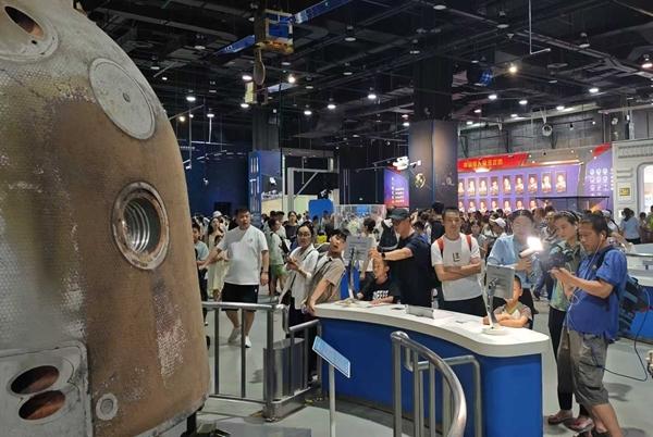 2025年暑期中国科技馆人潮涌动,“神舟一号”返回舱吸引游客围观。中国科技馆供图