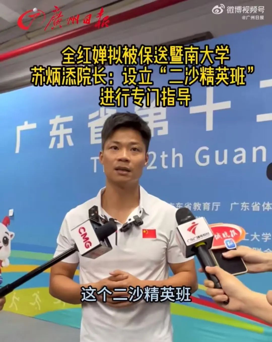据此前报道,全红婵被保送进入暨南大学就读运动训练专业,该院的院长是苏炳添。