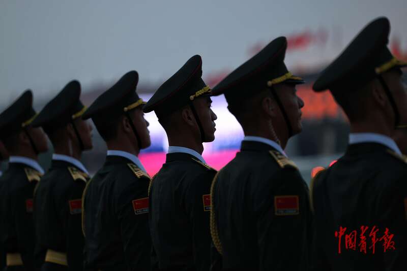 9月3日,北京天安门广场,标兵就位。中青报·中青网记者 曲俊燕/摄