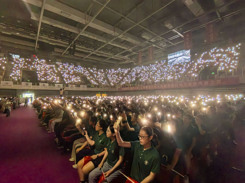 新生点亮“星海”,合唱《夜空中最亮的星》。李湘君/摄