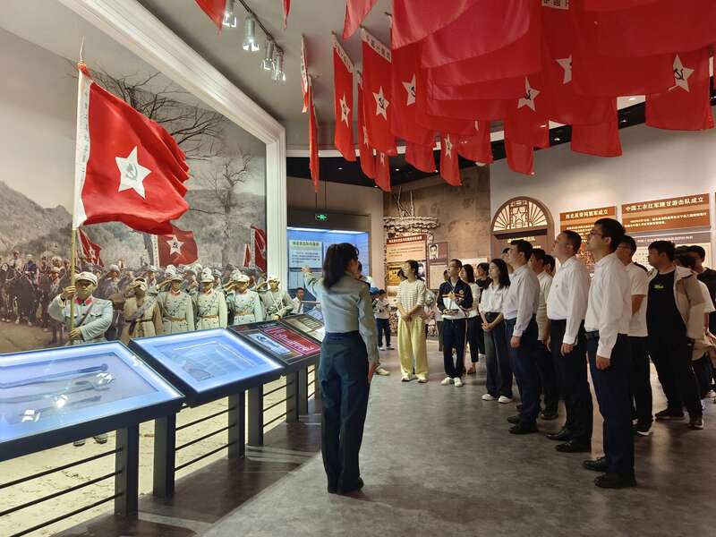 在南梁革命纪念馆,一面布满弹孔的军旗将同学们带回烽火连天的岁月。讲解员介绍,“这面旗见证的不只是长征的终点,更是抗战救亡的新起点”。