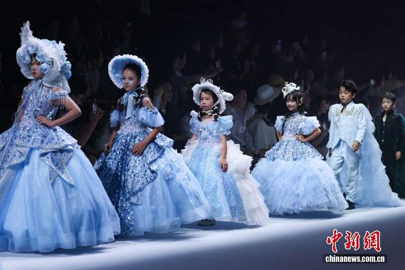 9月13日,在北京举行的2025中国国际时装周(秋季)上,设计师苏海林携品牌童装亮相。本季服装设计整体融入了宫廷风、洛可可艺术风格,将童话世界的浪漫与时尚设计的精妙完美融合。图为小模特展示童装。