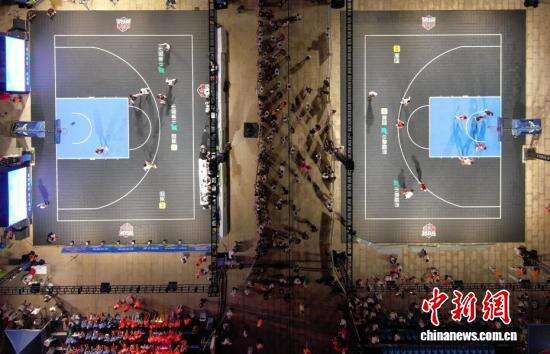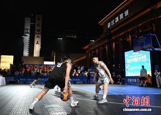 浙江杭州篮球运动热:“楼BA”决赛街头上演