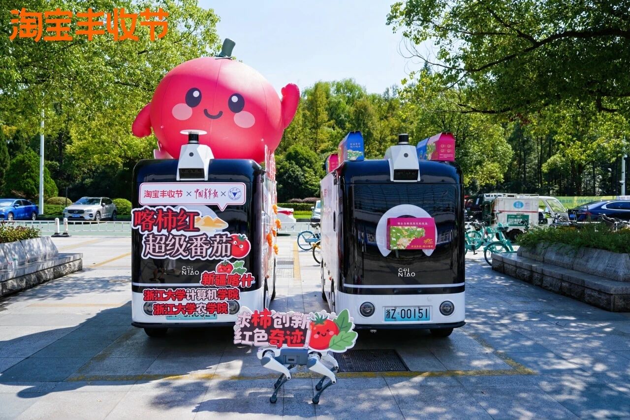 活动当天,“热血追‘番’号”和“暖城多味”两辆主题花车亮相浙江大学校园。热血追“番”号以动漫热血番的风格,演绎出佳景喀柿红水果番茄的科研历程,暖城多味则展示出浙江大学携手鄂尔多斯结合乡村振兴战略合作开发出的多款高原农牧优品,呈现出校地携手推动乡村产业发展的落地成果。身穿新疆特色风格服饰的“淘小宝”也伴随主题花车亮相,憨态可掬的淘小宝与浙大学子亲切互动,为丰收节活动注入趣味与活力。