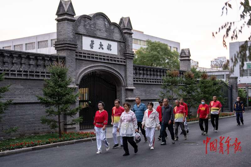 9月16日,辽宁省沈阳市,健身走的居民从北大营营房旧址旁经过。据介绍,北大营营房旧址在“九一八事变”中打响了中国军队抗战的第一枪,也是二战期间美英盟军战俘在沈阳最早的关押地。旧址是“九一八”事变的重要实物见证,是中国14年抗战起点的历史见证。中青报·中青网记者 李隽辉/摄