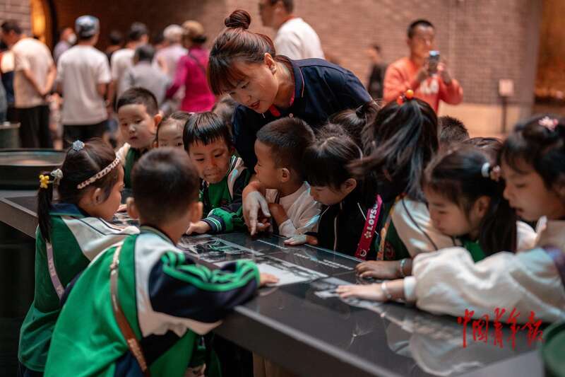 9月17日,辽宁省沈阳市“九·一八”历史博物馆,幼儿园的老师为小朋友们讲解。中青报·中青网记者 李隽辉/摄