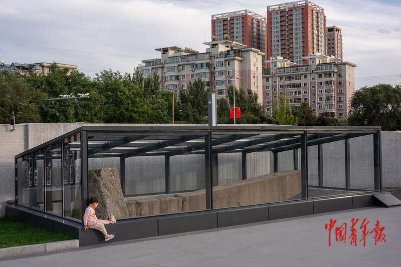 9月16日,辽宁省沈阳市“九·一八”历史博物馆,一位小朋友在柳条湖爆破地点碑旁。据介绍,柳条湖爆破地点碑,是当年日本关东军为伪造铁路爆破现场而设立的钢筋混凝土构筑物,1991年起作为日军侵华实证文物由沈阳“九·一八”历史博物馆收藏展出。中青报·中青网记者 李隽辉/摄