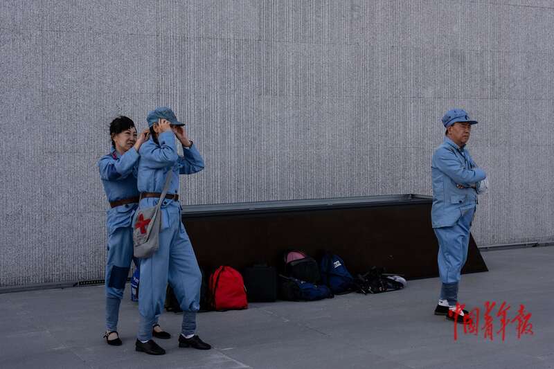 9月16日,辽宁省沈阳市“九·一八”历史博物馆,沈阳当地话剧团的演员们换上服装准备拍摄视频节目。中青报·中青网记者 李隽辉/摄
