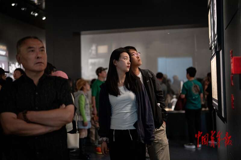 9月17日,辽宁省沈阳市“九·一八”历史博物馆,两位参观展览的年轻人。中青报·中青网记者 李隽辉/摄
