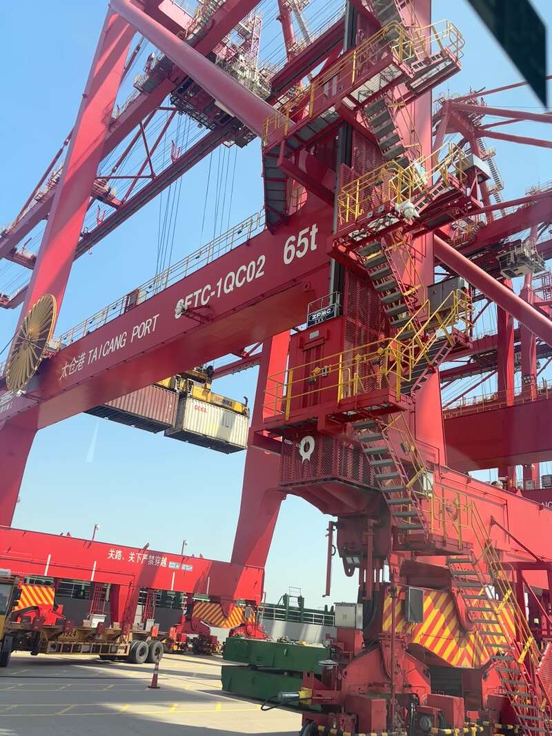近年来,太仓港还积极推动智慧绿色港口建设。在太仓港四期码头,记者看到,红色的高大轨道吊矗立在码头前沿,在极少人工参与作业的情况下,熟练地抓取集装箱。