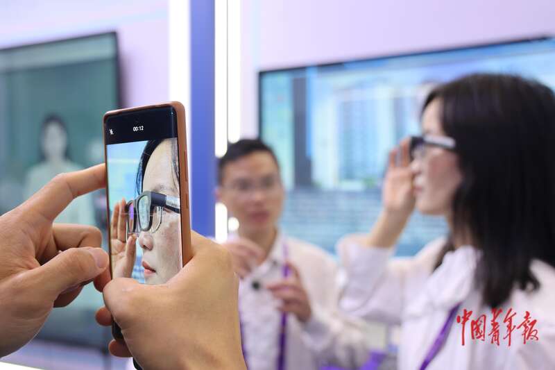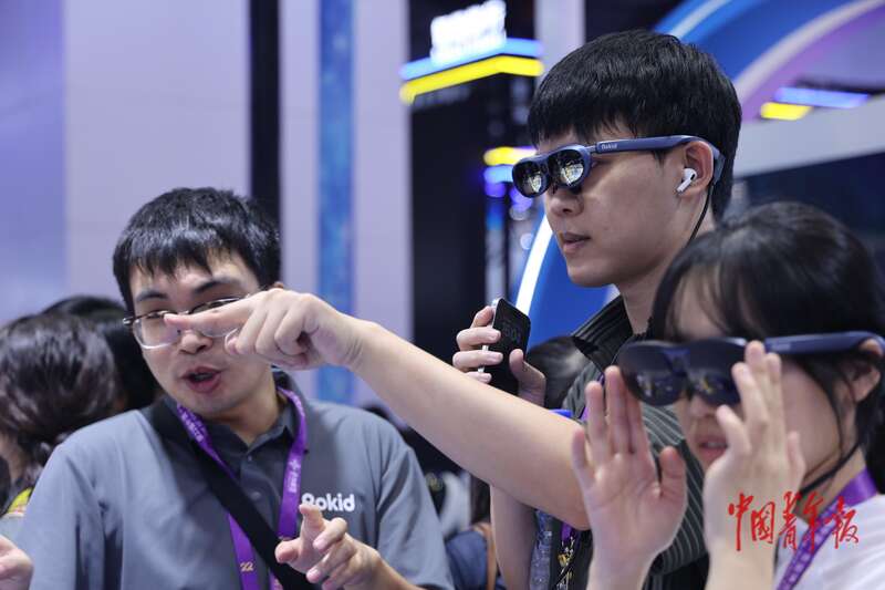 9月18日,在广西南宁举办的东博会上,观展者试戴体验一款AI智能眼镜。在东博会开幕式上,广西壮族自治区党委书记陈刚作开幕式致辞时,没有带讲稿,而是佩戴这款由广西企业生产、具有实时清晰提词功能的AI智能眼镜顺利完成发言。陈刚书记的“代言”,使得这款智能眼镜一时间红遍网络,产品脱销。据介绍,这款“广西产”AI智能眼镜不仅具备传统眼镜的轻便外观,更通过镜片投影、语音交互等技术,将提词器、导航仪、翻译机等功能集于一身。中青报·中青网记者 谢洋/摄