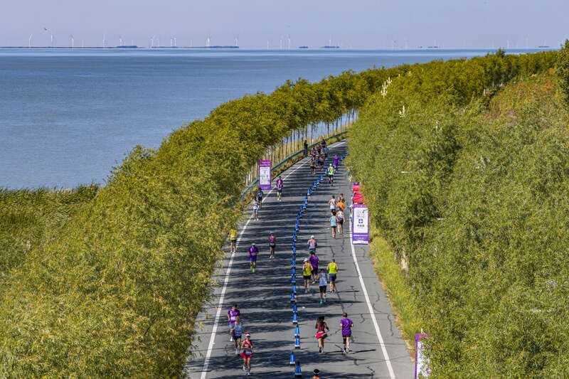 此次赛事吸引了来自国内外的1万名参赛者。赛道环湖而设,串联起湖畔、湿地、林地和传统渔村等景观,选手在竞技的同时还能欣赏查干湖美景。