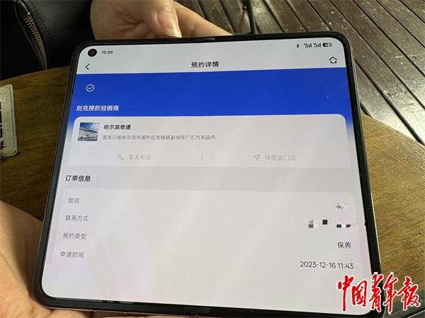 赵鹏同样感到不解。他说,自己此前的保养,都是通过雪佛兰App预约的。预约记录截图上清楚显示了公司名称“哈尔滨美通汽车贸易有限责任公司”。