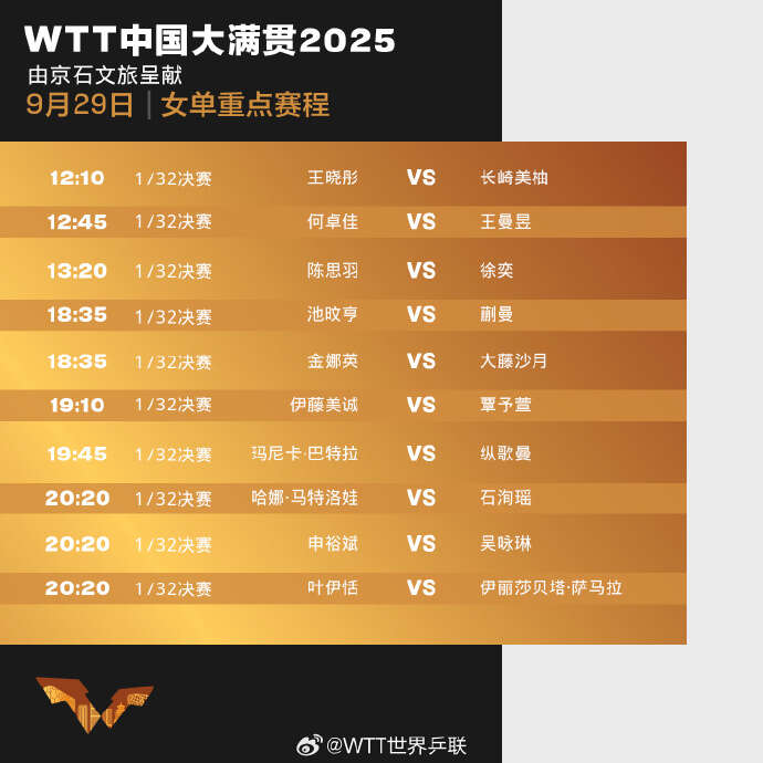WTT中国大满贯今日赛程公布!王曼昱、林诗栋将登场