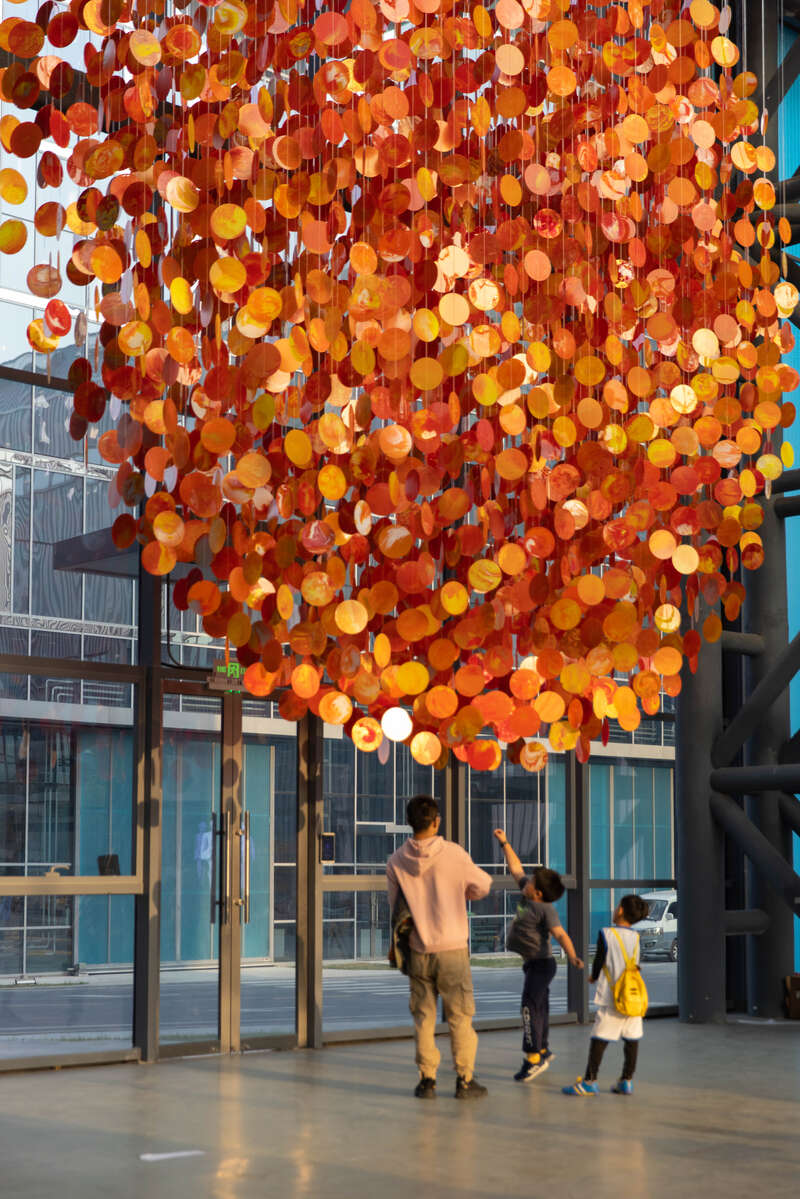 随后,张兆宏把这3000个“湍流”塑料圆盘挂在某大科学装置实验室的玻璃幕墙上,围成一个巨大的“人造太阳”。张兆宏说,李建刚院士路过时驻足,转过头对自己说:“张老师,如果这3000个孩子中,以后有3个人能够研究这个问题,(你们)就是功德无量。”