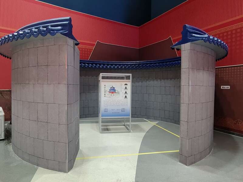 而“科技中轴线”展览则在展厅里造了一个天坛回音壁“原理样壁”,来参观的大小朋友都爱在此游戏,感受古代声学设计之妙。