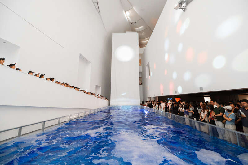 走进中央美术学院美术馆,首先映入眼帘的是50吨人造海水托起一轮用户外阳光映射出的“人造太阳”,这是“能源与文明——科学艺术·聚变未来”科普展览的一部分,也是策展人、中央美术学院雕塑系教师张兆宏将未来能源来源——可控核聚变可视化的巧思之一。