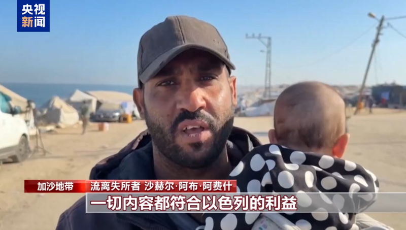 流离失所者 沙赫尔·阿布·阿费什:一切内容都符合以色列的利益,另一方面,他们想杀死我们、摧毁我们、驱逐我们。特朗普永远不会为了巴勒斯坦的利益,他做任何事都是为了以色列的利益,我们已经失去了一切,我们是一个被摧毁的民族,我们已经被抛弃了。