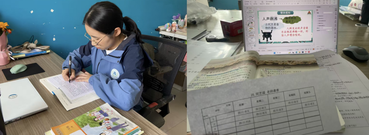 何艺璇因独立接手完整的语文教学而手忙脚乱:从前实习时只需完成几个课时的独立教学,如今却要规划单元知识框架、设计循序渐进的教学衔接、监督作业与习惯养成;