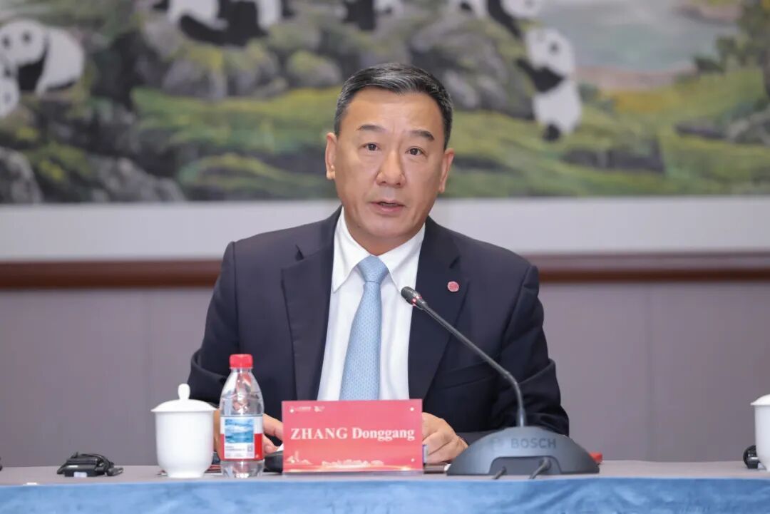 中国人民大学党委书记张东刚出席并致辞。中国人民大学副校长支晓强,香港经纬集团副主席兼执行总裁陈亨利,中国前国家跳水队队员、跳水奥运冠军、世界泳联跳水技术委员会委员、商学院2004级校友郭晶晶,西班牙艾赛德商学院院长Joan Rodon Mòdol,北京紫禁城投资管理有限公司董事长罗锐韧,二六三网络通信股份有限公司董事长兼总裁李玉杰,吉利科技集团有限公司CEO兼董事徐志豪,中国人民大学原副校长、第五届全国MBA教育指导委员会副主任委员伊志宏,中科润宇环保科技股份有限公司副董事长张国宏,凤凰城科技集团董事长周明德,北京钮泰文化发展有限公司董事长张云,澳大利亚墨尔本大学商学院院长Jenny George出席会议。意大利路易斯大学副校长Antonio Majocchi、日本一桥大学商学院院长大园惠美、新紫光集团有限公司董事胡冬辉、固德威技术股份有限公司董事长兼总经理黄敏、霍氏集团总裁霍建民、中诚信集团董事长毛振华、用友网络科技股份有限公司董事长王文京以线上形式出席会议。中国人民大学商学院党委书记旋天颖主持。