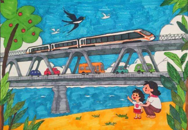 “呜——咔嚓咔嚓!”火车像一条银光闪闪的巨龙,载着我和妈妈奔向远方的外婆家。我像只小壁虎一样趴在车窗上,鼻子都快贴到玻璃上了。妈妈轻轻摸着我的头说:“铁路是地上的彩虹桥,连接着家和远方。”可我觉得,它更像一条会讲故事的魔法隧道,要把我们带进童话书里!