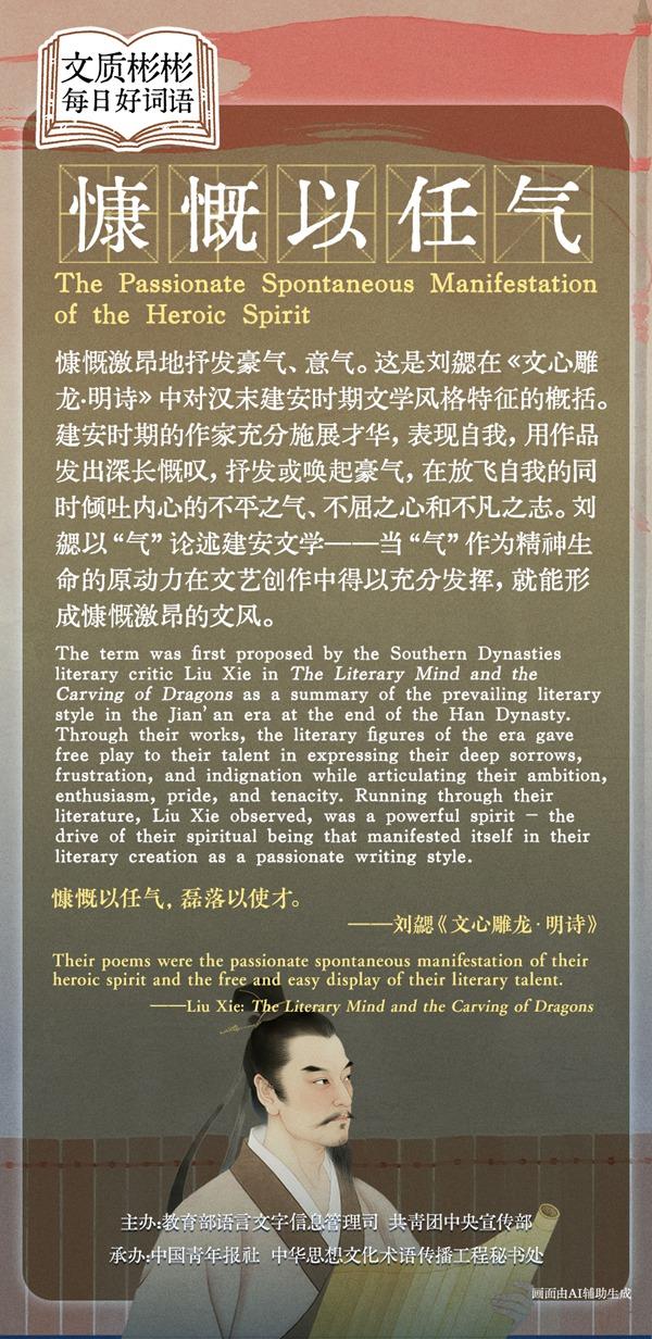 Their poems were the passionate spontaneous manifestation of their heroic spirit and the free and easy display of their literary talent. (Liu Xie: The Literary Mind and the Carving of Dragons)