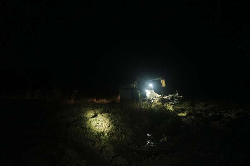 10月12日,河南桐柏,夜里,一台履带式收割机正在泥泞不堪的稻田里收割,由于长期下雨、刮风,许多水稻都倒在了田里。为了应对黄淮海地区的灾情,财政部近期会同农业农村部,下达了4.84亿元的中央财政农业生产防灾救灾资金,支持河北、山西、江苏、安徽、山东、河南、陕西等7省受灾地区加快开展农机抢收、潮粮烘干、农田排涝等农业生产防灾救灾工作。中青报·中青网记者 李强/摄