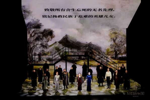 中国青年报客户端讯(中青报·中青网记者 蒋肖斌)近日,音乐剧《风声》在上海西岸大剧院上演。该剧改编自麦家同名小说,聚焦1941年裘庄内情报传递的生死博弈,以舞台艺术还原至暗时刻革命先烈的勇毅坚守。