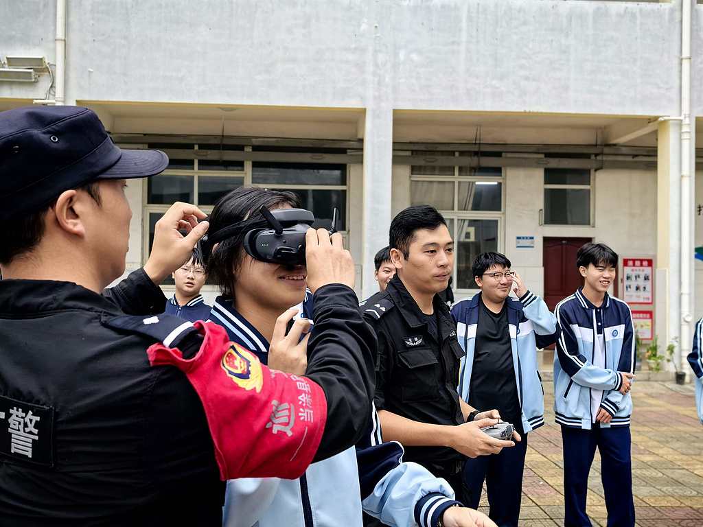 2025年10月15日,安徽马鞍山,当涂县公安局特巡警大队警航中队特巡警走进当涂县经贸学校无人机专业班,为学生带来低空经济实践课。