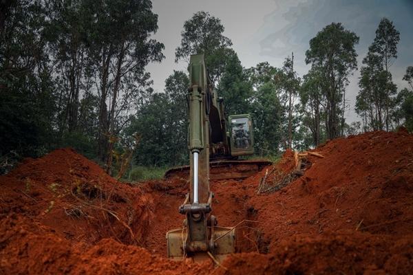 不久前,滇中下了一场暴雨,深夜的密林化作一片泥泞的战场。巨大的雨声与机械轰鸣声交织在一起,茶君抹掉脸上的雨水,不断大声吼着:“防雨布覆盖坑道边缘,固定桩加力!”
