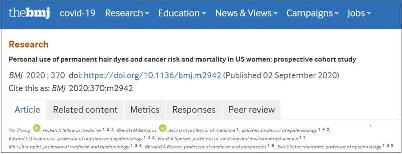 少用永久性染发剂,2020年,发表在《英国医学杂志》上一项大型前瞻性队列研究发现,使用永久染发剂与皮肤癌、乳腺癌、卵巢癌、淋巴瘤发病风险增加有关。