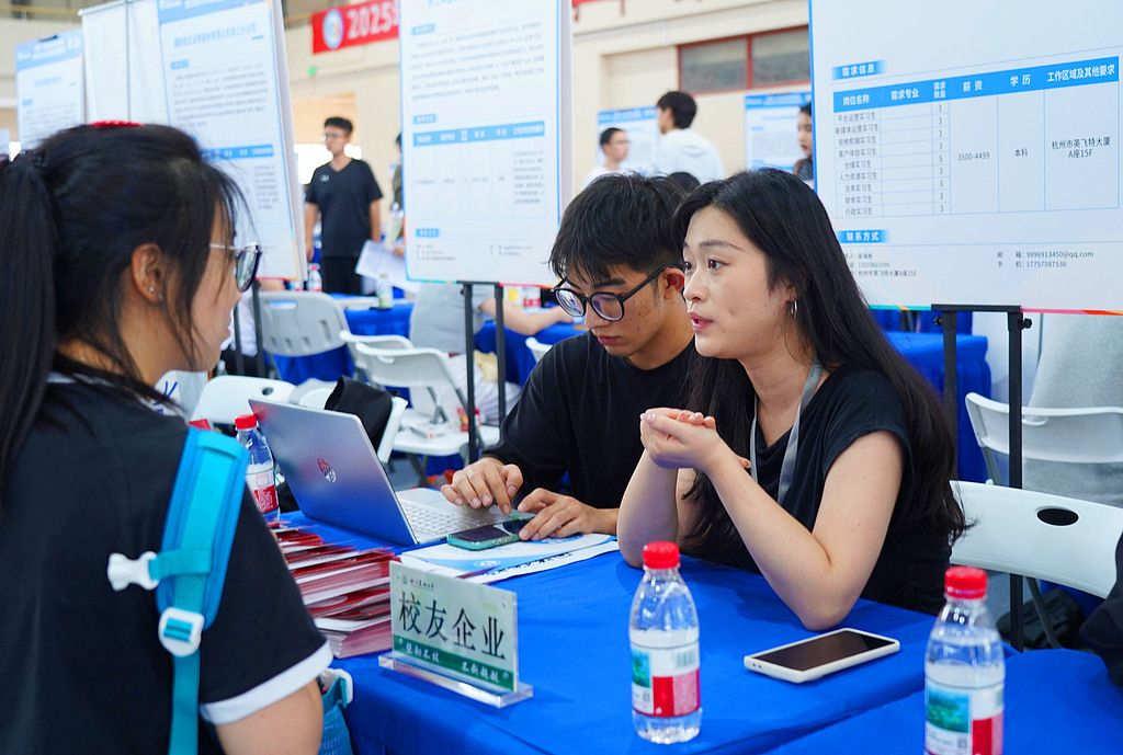 2025年10月16日下午,杭州,浙江省2026届高校毕业生首场秋季招聘会——“浙里有才”浙江省山区海岛县专场招聘会在浙江农林大学举行。本次招聘会提前在网上公布了用人单位和招聘岗位数,很多求职学生都抱着明确的求职目标过来应聘,实现了用人单位和求职学生“双向奔赴”,让本次招聘会更加务实高效。