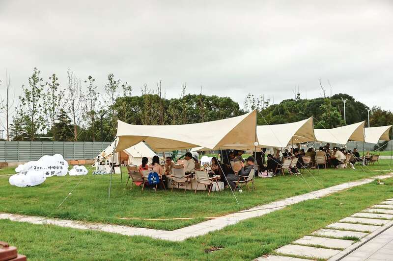 演出开始前,奉贤举办了美妆潮玩生活派对活动,聚拢了一波人气。这场市集串联美妆颜究所、潮玩造物局、美食补给站、露营松弛区等四大区块,结合趣味任务与终极挑战,打造沉浸式“闯关+解压”双重体验。上海科学技术职业学院带来了科创文创融汇体验活动,苜艺千蓿、金翠云冠等学生项目来到现场展示。此外还有文化与潮流的惊喜联动,以奉贤锦带纹样为灵感,融入国潮“谷子”设计,将纹样里的吉祥寓意藏进吧唧、冰箱贴、贴纸等随身小物里,让传统美学玩转生活。据主办方介绍,未来音乐节将继续探索音乐结合青年生活方式的新模式,持续激活青春经济与区域发展的深度融合。