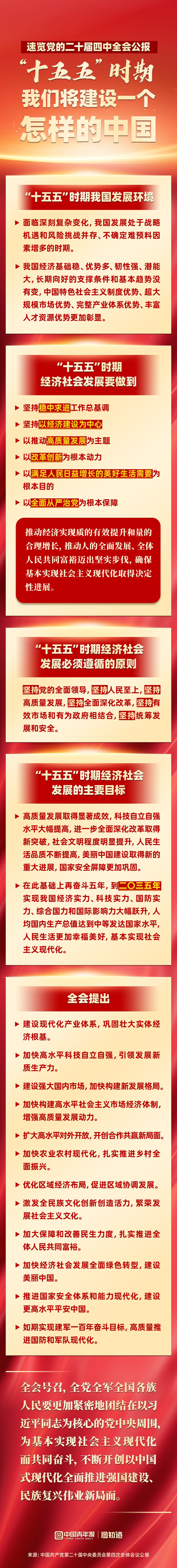 党的二十届四中全会审议通过“十五五”规划建议。“十五五”时期是基本实现社会主义现代化夯实基础、全面发力的关键时期,在基本实现社会主义现代化进程中具有承前启后的重要地位。未来五年中国将如何发展?“十五五”时期发展的目标和方向是什么?看党的二十届四中全会公报中描绘的“十五五”时期路线图。向着未来,共同奋斗!