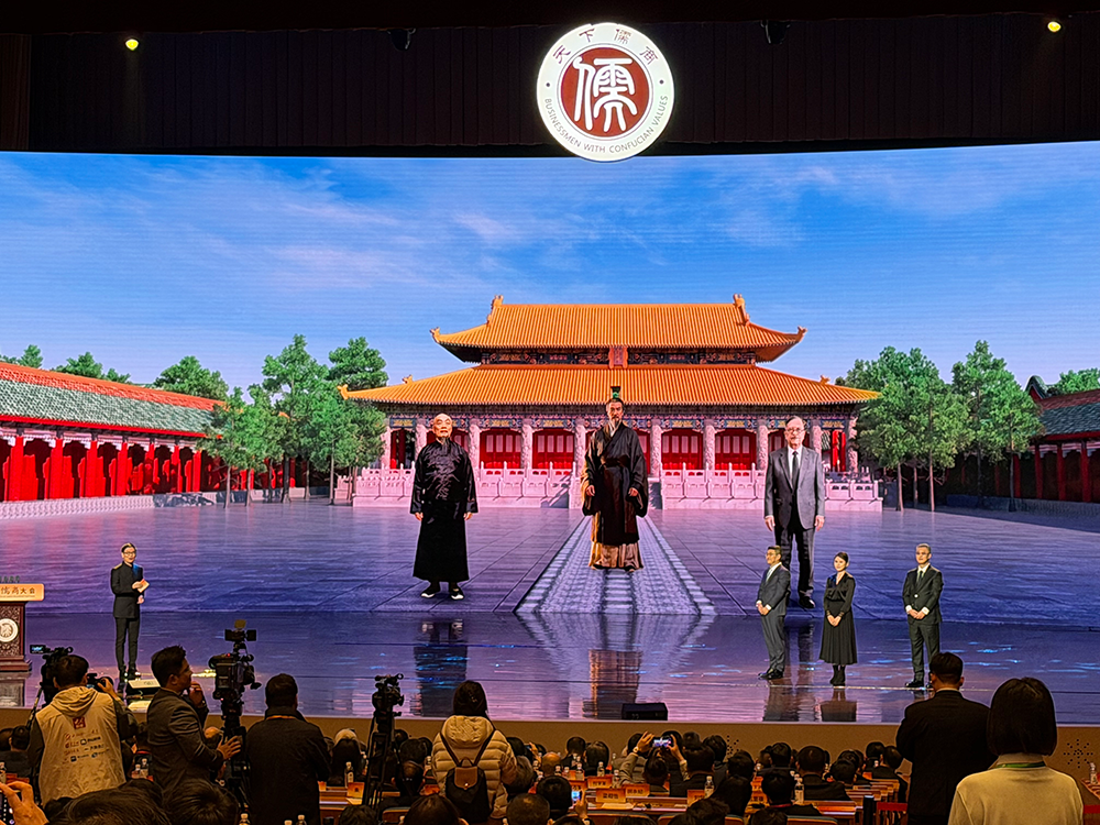 这场精心设计的“跨越时空的对话”环节,通过AI大模型技术,子贡、张謇、陈嘉庚三位先贤以数字人形象重现,与当代青年企业家展开了一场关于商业本质的千年问答。