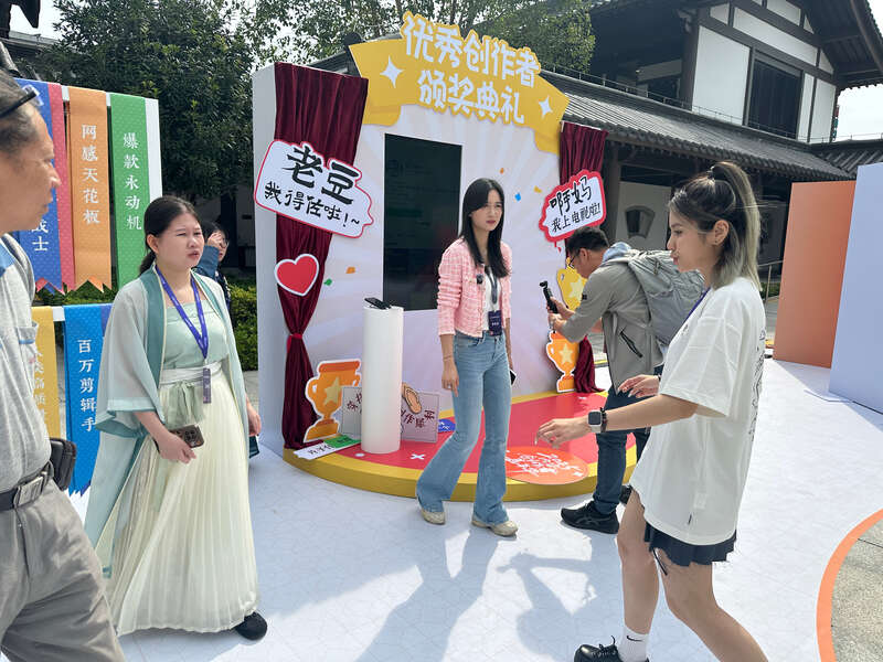 内容创作者现场打卡。中青报·中青网记者 林洁/摄