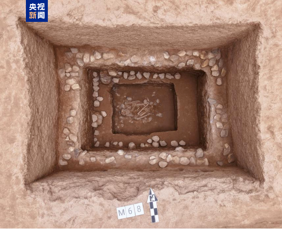 战国墓葬以东西向竖穴土坑墓为主,占比95%以上。随葬器物主要有陶鬲、罐、盆等。从墓葬形制、葬式和随葬品组合来看,墓主多为秦人。陪葬品形制和组合与任家咀墓地第四期极为相似,年代主体应为战国中期,有个别墓葬年代可到战国早期。特别值得注意的是,墓地中还分布有25座积石墓。这些墓葬的墓向、葬式、随葬品均与其他墓葬无异,但在生土二层台上或墓底放置大量河卵石。